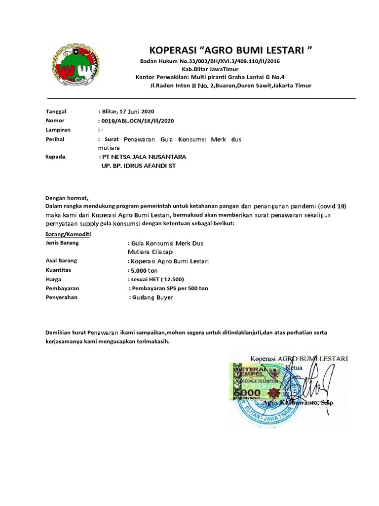 Penawaran Gula Kop Agro Ke Netsa Pdf